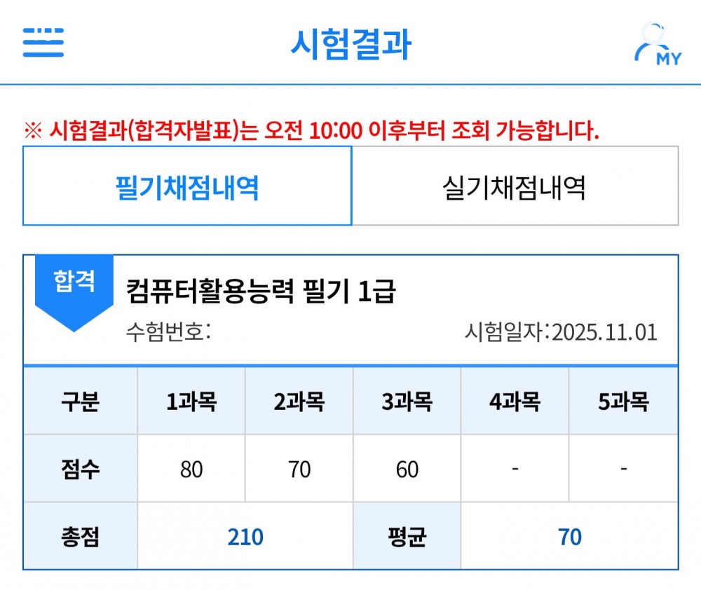 - 23년 두목넷 강의로 사무자동화산업기사 합격후, 올해 9월부터 컴활1급에 도전하고 싶어 강의 역시 두목넷 강의로 했는데, 직장인이다 보니 시간이 없어 하루에 한 강의 듣고 하는 식으로 했고, 수강종료후 기출이랑 인터넷에 돌아다니는 모의고사 보면서 합격했네요.