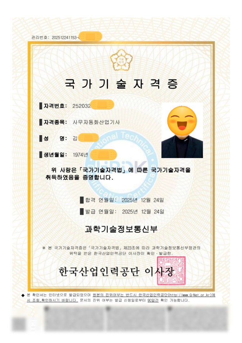 그리고, 시험 결과를 확인했을 때, 96점이라는 높은 점수로 합격했다는 사실에 스스로도 놀랐습니다. 특히 연말, 그것도 크리스마스를 앞두고 합격 소식을 받으니 마치 선물을 받은 기분이 들어 더욱 기뻤습니다.